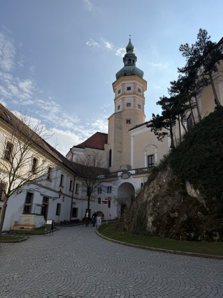 Mikulov – „Piękne okolice usiane winnicami i białymi skałami, a w cieniu tutejszego zamku bajkowe miasto Mikulov. Można w nim podziwiać wiele zabytków, wsiąść na rower i pojeździć po zalanej słońcem okolicy albo posiedzieć przy kieliszku doskonałego wina. Po prostu Mikulov jest miastem, którego w żadnym przypadku nie można ominąć podróżując po południu Moraw.Już z daleka widać dominantę miasta, barokowy zamek, stojący na wysokiej skale. Organizowane są w nim różne wystawy, ale godna uwagi jest także piwnica zamkowa, w której zorganizowano ekspozycję prezentującą różne ciekawostki na temat uprawy winorośli w tym regionie. Z pewnością przyjemnym przeżyciem dla ducha będzie spacer po tym uroczym mieście, gdzie na głównym placu znajdują się bogato zdobione domy i mauzoleum rodziny Dietrichsteinów. Przyjemnie zapowiada się także wycieczka na niezbyt oddalone Święte Wzgórze. Nagrodą będzie nie tylko uroczy spacer wśród winnic, ale przede wszystkim wspaniały widok na ten harmonijny region między Mikulovem a Wiedniem. Źródło”: https://www.visitczechia.com/pl-pl/things-to-do/places/landmarks/cities/t-mikulov