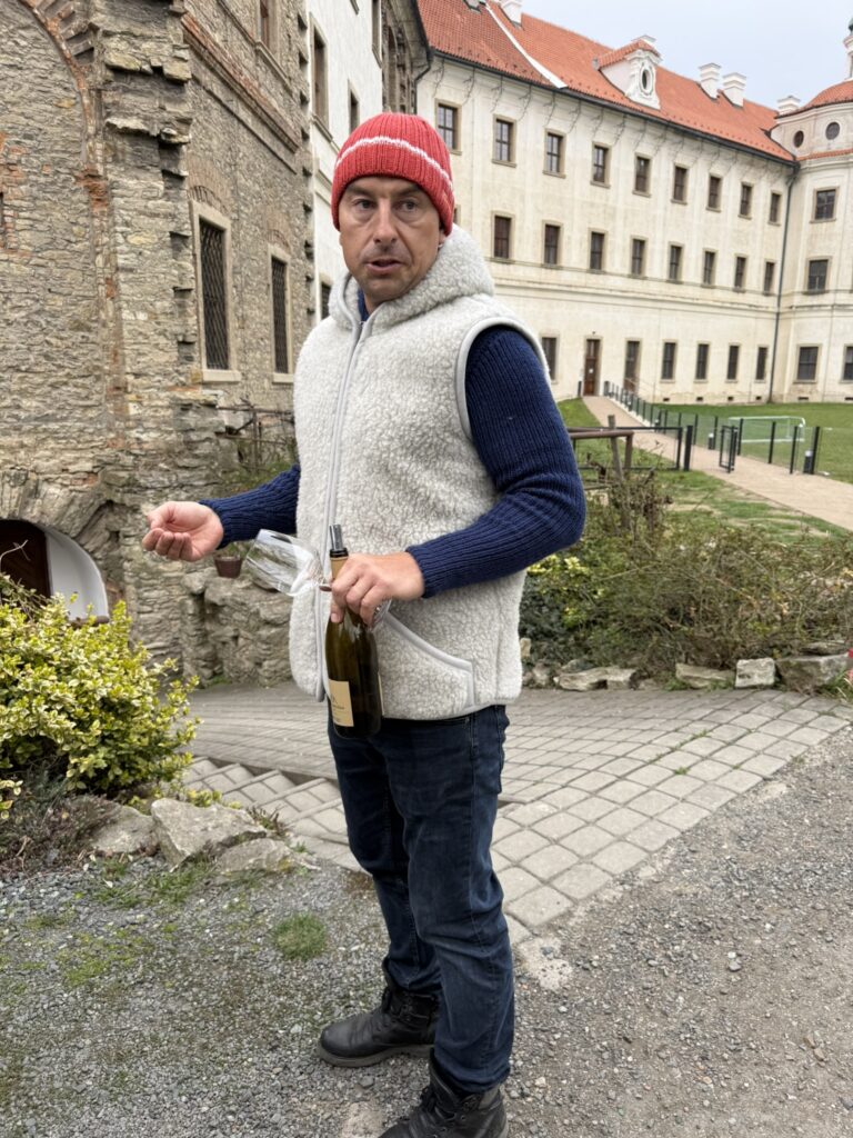 Wolna Republika Federalna Kraví Hora w gminie Bořetice. Tak to oczywiście żart, ale jednocześnie bardzo dobry pomysł na atrakcję turystyczną, stworzoną przez lokalnych winiarzy w Bořeticach. Jest to „państwo“, które powstało, aby promować lokalne wina i kulturę winiarską. W ramach tej Republiki funkcjonują własne paszporty, władze i waluta – wszystko ma na celu przyciągnięcie turystów i miłośników wina do tego winiarskiego regionu. Odbywają się tu liczne festiwale winiarskie, degustacje oraz imprezy kulturalne, na które przyjedają goście z całego świata. Funcjonują tu liczne „ambasady“ – ta polska czeka jeszcze na otwarcie. Przyjemny spacer uliczkami, przy których ulokowane są piwniczki, szybka degustacja. Zapamiętana dzięki dwóm winom Pani Minister a przy okazji winiarki z Vinařství Tři čtvtrě (Winnica Trzy Czwarte) – w obu przypadkach czyli wina Svatovavrinecke 2022 oraz ryšáka Quiler 2023 – aromatyczne, bardzo owocowe, dobrze zbalansowane. Winnica niskointerwencyjna, wina fermentowane spontanicznie, wszystko w tej dwuhektarowej mikroskali się zgadza. https://www.republikakravihora.cz/
