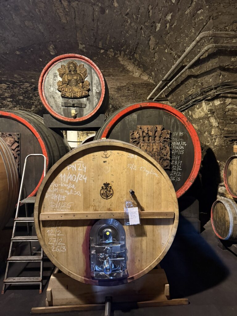 Piwnice zamkowe w winiarni Lobkowicz w Roudnicach – degustacja lokalnych win, w tym odmiany Fratava i naturalnych win ekologicznych z ręki winiarza Karela Stejskala https://www.lobkowicz.cz/en/zamek-lobkowicz-roudnice-winery
