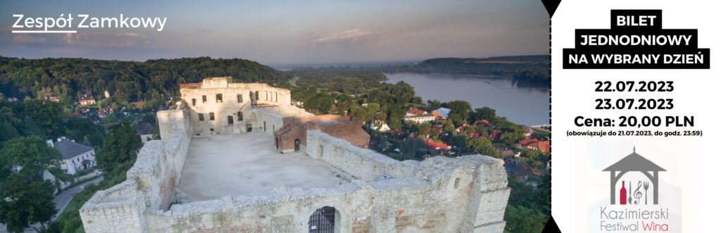 obowiązuje cena 20,00 PLN – bilet jednodniowy dla jednej osoby. W dni festiwalowe, czyli 22.07.2023 oraz 23.07.2023 bilety jednodniowe dla jednej osoby będą dostępne w cenie 25,00 PLN. Bilety wstępu obowiązują na Zespół Zamkowy, natomiast lokalizacja Mały Rynek jest dostępna dla Gości bezpłatnie.