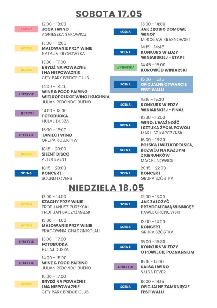 Oprócz degustacji wyjątkowych win, organizatorzy przygotowują mnóstwo atrakcji: oprawę muzyczną z koncertami na żywo, strefę silent disco oraz unikalne warsztaty i prezentacje, które udowodnią, że wino to nie tylko napój, ale też element kultury i ponad 1000-letniej historii Wielkopolski oraz wyjątkowy styl życia. Miasteczko winiarskie odwiedzą na tę okazję szczudlarze oraz członkowie Teatru Asocjacja 2006 w niepowtarzalnych strojach.