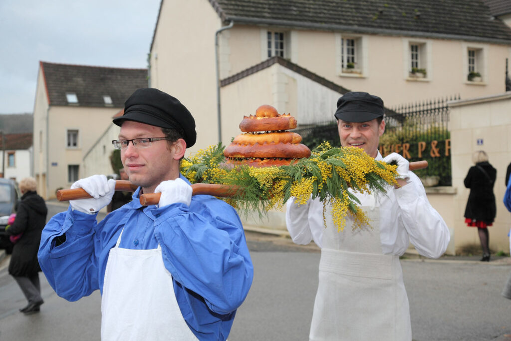 Winiarze, ubrani w stroje z epoki, idą w procesji do kościoła. Parada jest bardzo radosna i kolorowa: narzędzia pracy są z tej okazji przystrojone, niektórzy młodzi obracają beczki, inni tańczą i śpiewają, jeszcze inni niosą rzeźby św. Wincentego. Winiarze niosą do kościoła beczułkę młodego wina i brioche. Wino zostanie ofiarowane kapłanowi jako wino mszalne, a poświęcona brioche zostanie podzielona podczas nabożeństwa.