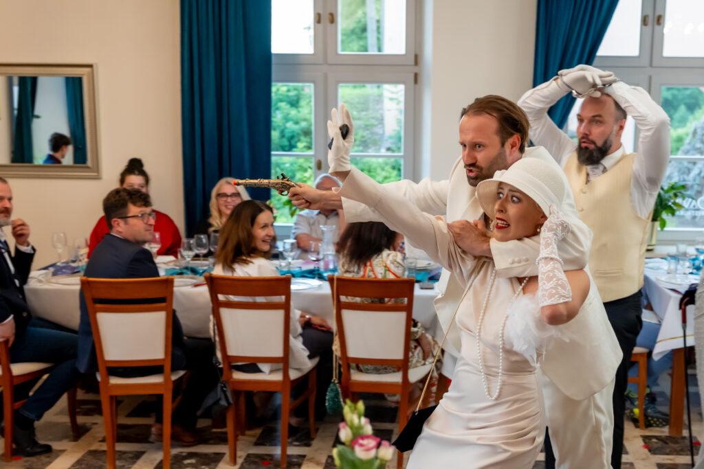 Pani Renata podkreśla, że w Dworze Starostów Chęcińskich chce kontynuować tradycję dworów szlacheckich, na których odbywały się nie tylko uczty czy bale, ale także koncerty i przedstawienia teatralne. Stąd pomysł wystawienia sztuki połączonej z wykwintną kolacją.