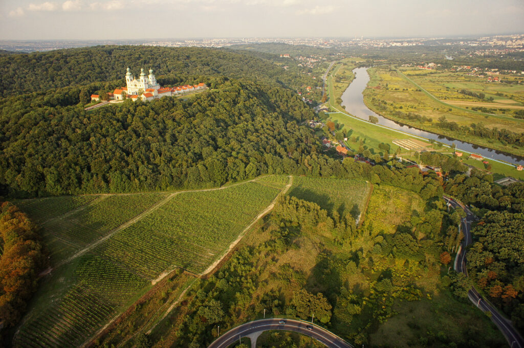 Widok na Winnicę Srebrna Góra u stóp Klasztoru O.O. Kamedułów na Bielanach w Krakowie